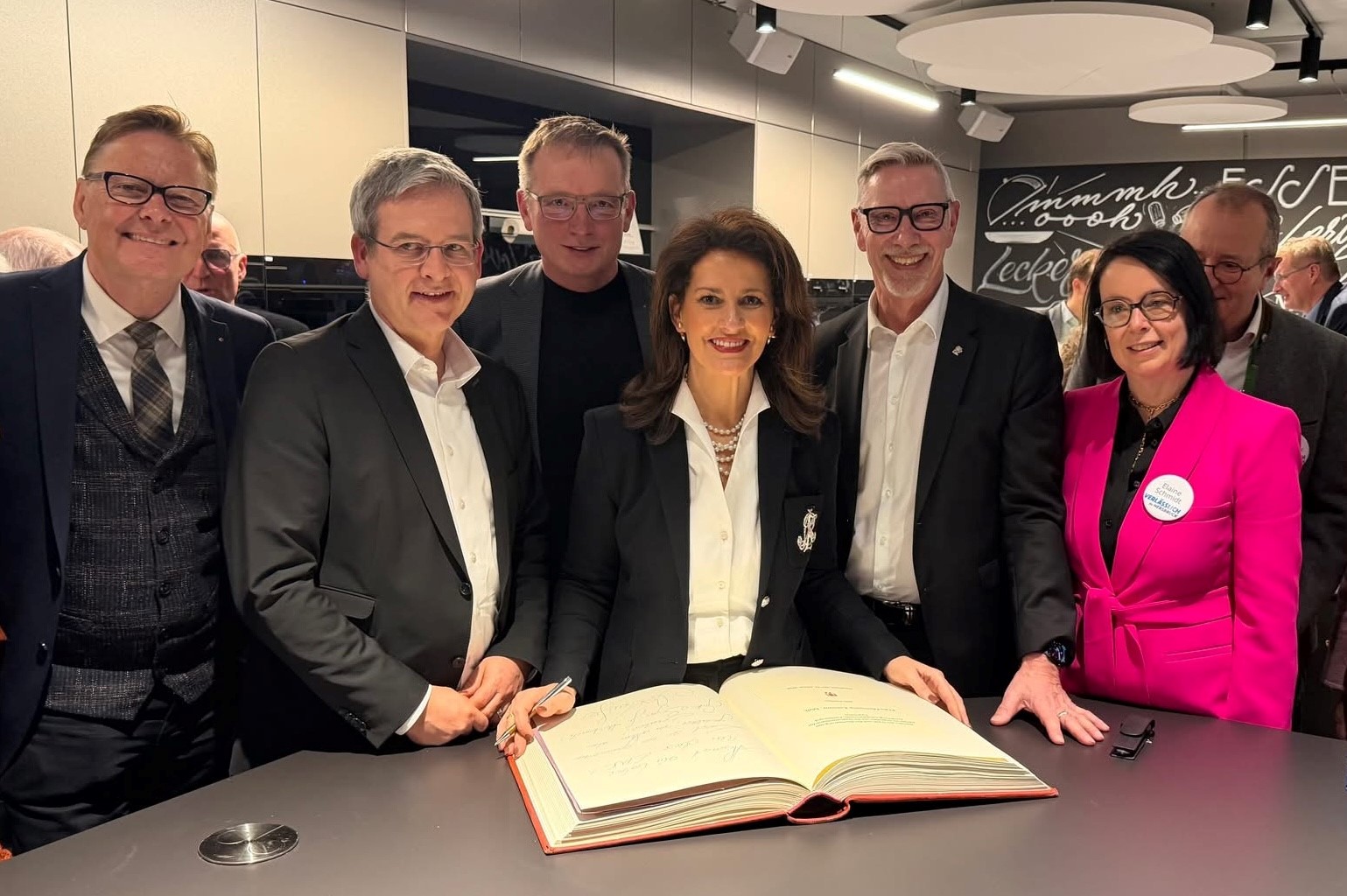 Mit dem Eintrag von Staatsministerin Michaela Kaniber in das Goldene Buch der Stadt Hersbruck – gemeinsam mit den beiden Bürgermeistern Robert Ilg und Peter Uschalt, MdL Norbert Dünkel, Fraktionsvorsitzenden Götz Reichel und der Vorsitzenden der Frauen-Union Elaine Schmidt – ging der offizielle Teil des Abends in den geselligen Austausch über. Bei feinen Weinen, den Bieren der Bürgerbräu und fränkischen Schmankerln der Landmetzgerei Loos nahm sich die Ministerin noch lange Zeit für persönliche Gespräche mit den Gästen.